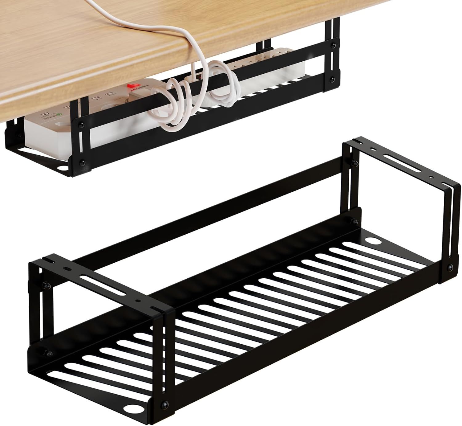 Plateau de Gestion de câbles sous la Table, Chemin de Cable Management Bureau, Rangement Cable Bureau, Support multiprise sous Bureau, Chemin de Cable Bureau, Noir
