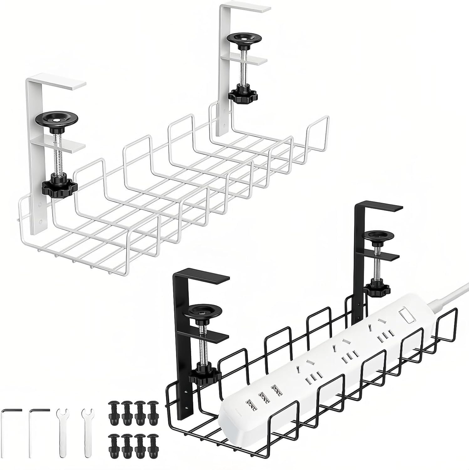 Chemins de Câbles sous Le Bureau, HOMMAND Lot de 2 Cable Management Bureau Goulotte Ultra Solide, Gestion de Câbles Plateau de Rangement Cable pour Garder Les Câbles du Bureau Bien Rangés