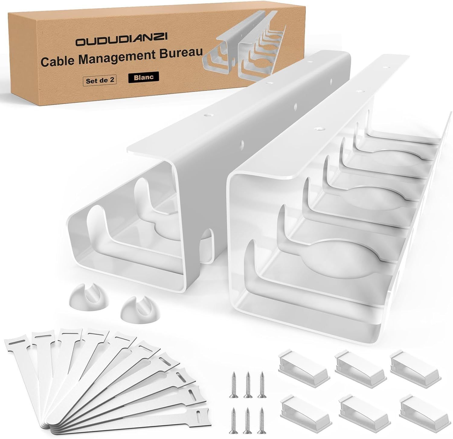 Oududianzi Set de 2 Chemin de Câble, Cable Management Bureau, Rangement Cable Bureau, Cache Cable Bureau, Goulotte Passe Cable Bureau, Organisateur de Cable - Blanc