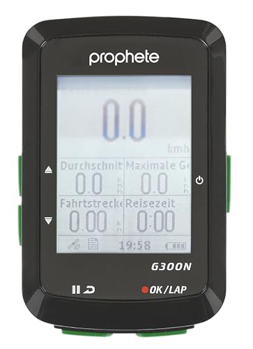 PROPHETE Ordinateur de vélo GPS 14 Fonctions, GPS de vélo, étanche IPX6, écran éclairé, Batterie Li-ION avec câble USB et Support de Guidon