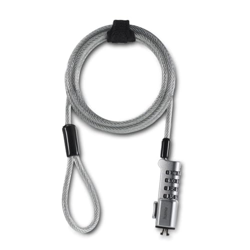 Hama Câble Antivol pour Ordinateur Portable PC ou Ecran à Combinaison (Cable de sécurité pour PC, Serrure à 4 Chiffres, 1.85m, Acier)