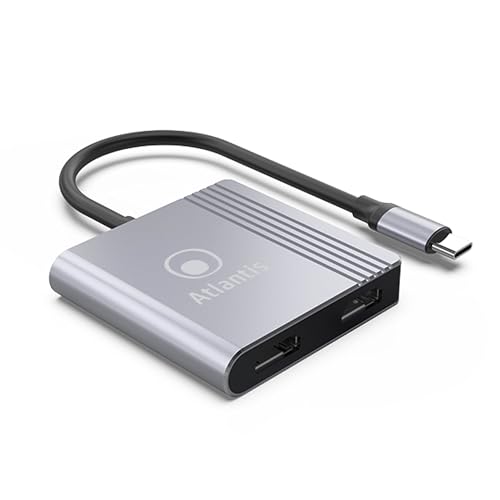 Atlantis A04-TC_2HDMI+ Dual Monitor Adapter USB C Type C vers 2xHDMI, 1080p 60 Hz,pour connecter un ordinateur portable avec sortie USB C à un projecteur à double écran avec entrée HDMI.Câble de 18 cm