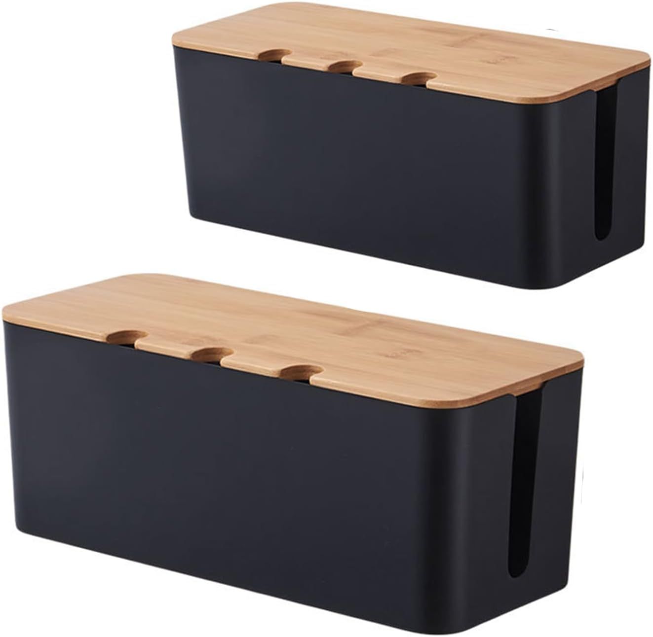 Cable Management Box With Lid: Cable Organizer Box - Power Strip Storage Box, Tidy Workspace For Cables/Power Strips, 2 Sizes (2Pcs-Black)