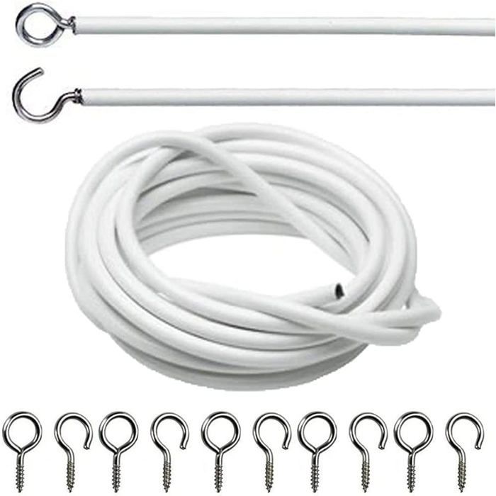 Câble métallique blanc pour rideau en filet avec 8 crochets et 8 œillets (3 mètres de câble + 8 crochets + 8 œillets)