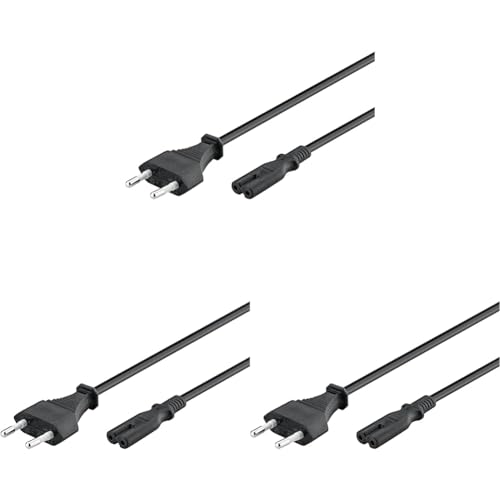 Goobay 97359 Câble de raccordement Euro/Câble Secteur/Câble d'alimentation / 2 Fils / (Type C, CEE 7/16) sur Prise d'appareil C7 / Noir / 0,5m (Lot de 3)