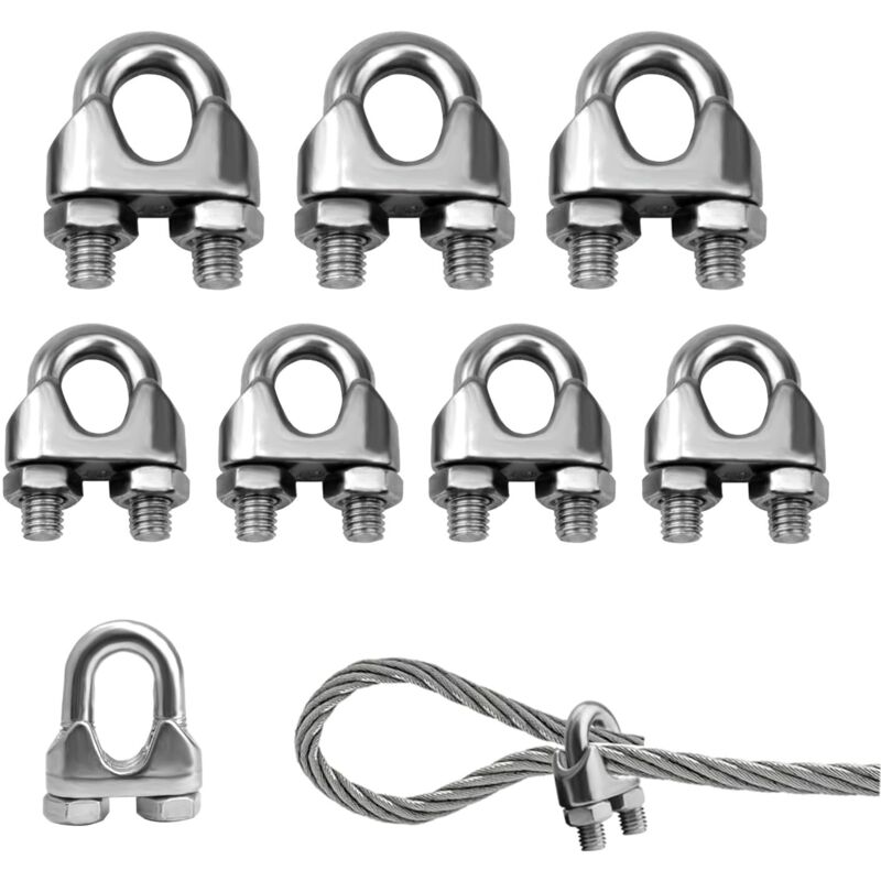 Lot de 8 attaches de câble en acier inoxydable - en forme de U M6, finition - pour clôtures de jardin, tringles à rideaux et fixations extérieures