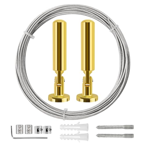 YIXISI 5m Tringle à rideaux Kit, Câble en Acier pour Rideau, pour Accrocher Photos, Images, Notes, Rideau, Décoration Murale d'art de Pépinière (Or)