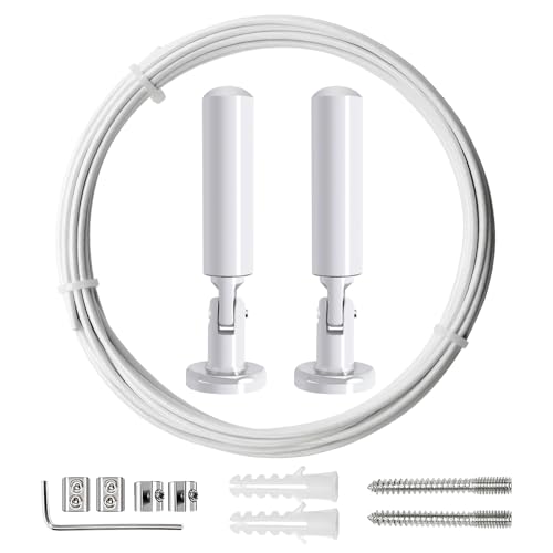 YIXISI 5m Tringle à rideaux Kit, Câble en Acier pour Rideau, pour Accrocher Photos, Images, Notes, Rideau, Décoration Murale d'art de Pépinière (Blanc)