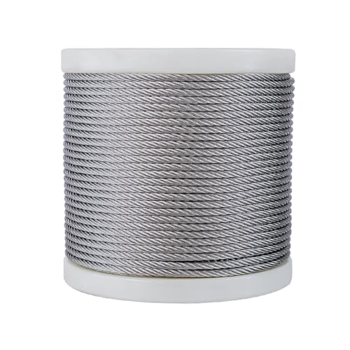 BOJHGO Câble métallique en Acier de 50/100 m avec revêtement PVC, Flexible, Souple et Transparent, for Rideaux d'éclairage, suspensions Maison(100.0M)