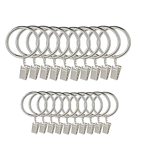 Molinter Lot de 20 anneaux de rideaux avec clips pour fixation de câble Diamètre intérieur 50 mm