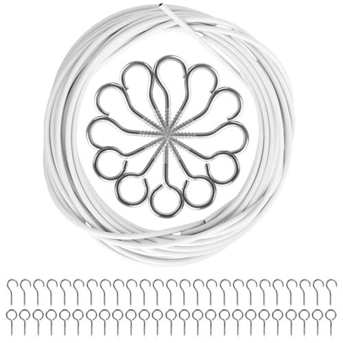 Dtoterul 5M Cable pour Rideaux Fil de Rideau Corde Cordon de Rideau Blanc Corde de Rideau Enduite de Plastique Câble de Rideau avec Crochet de Rideau et Boulons à Oeil pour Suspendre Les Rideaux