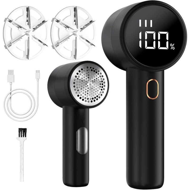 Anti Bouloche Électrique,Écran LED,Rechargeable Câble Type-C,Tête à 6 Lames Fraise à Peluches,Idéal pour Vêtements Canapés Couvertures Rideaux