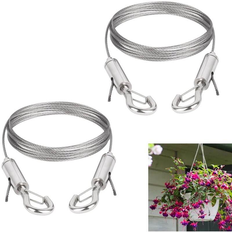 1.5mm x 2m 2 Pièces Câbles à Crochet en Acier Inoxydable Cable pour Rideaux Réglable Corde de Lustre pour Encadrement Tableau, Fil Etendoir Linge