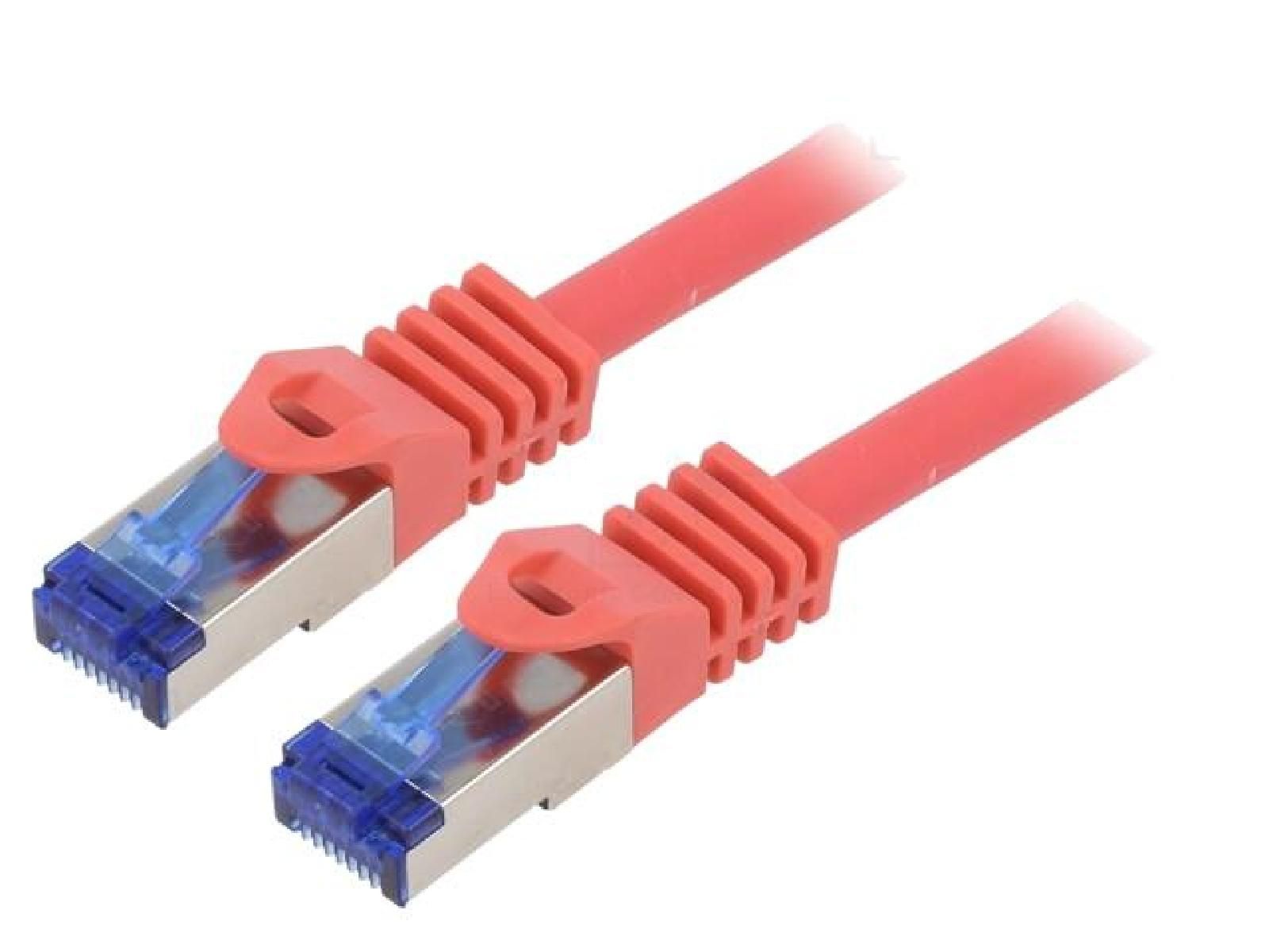 Cable reseau RJ45 male S-FTP Cat 6a rouge- 1m