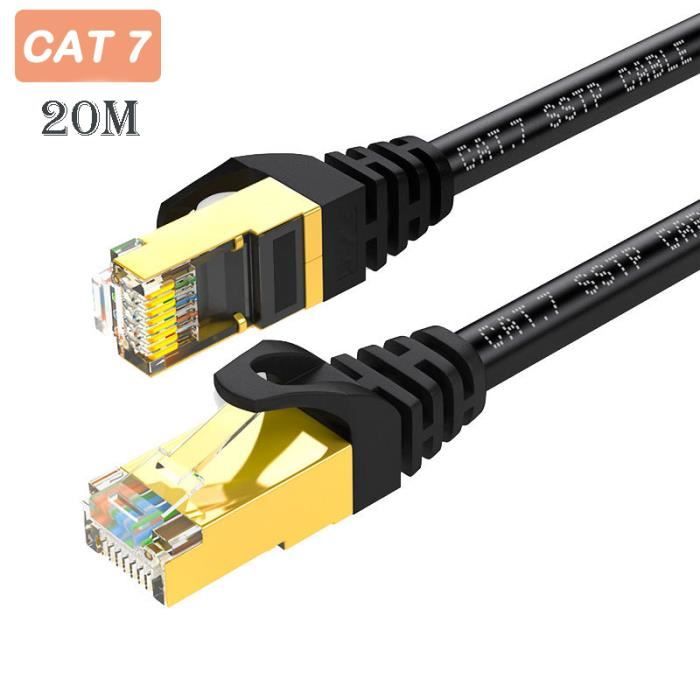 Câble Ethernet Cat7 Câble Réseau Plat RJ45 Haut Débit Blindé 10Gbps 600MHz 8P8C Compatible avec Routeur Modem(20M)