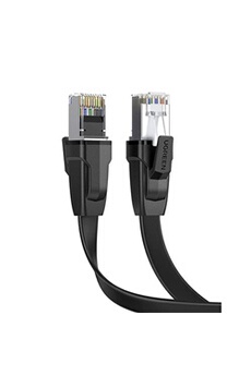 Hamiltion-Cable Ethernet 15M Cat 8, Cable Réseau Blindé Plat, Haut Debit Gigabit 40Gbps 2000Mhz, Cable Rj45 Gigabit Plat, Câble Internet Noir 15 Mètres, Cable Lan Pour Modem Routeur
