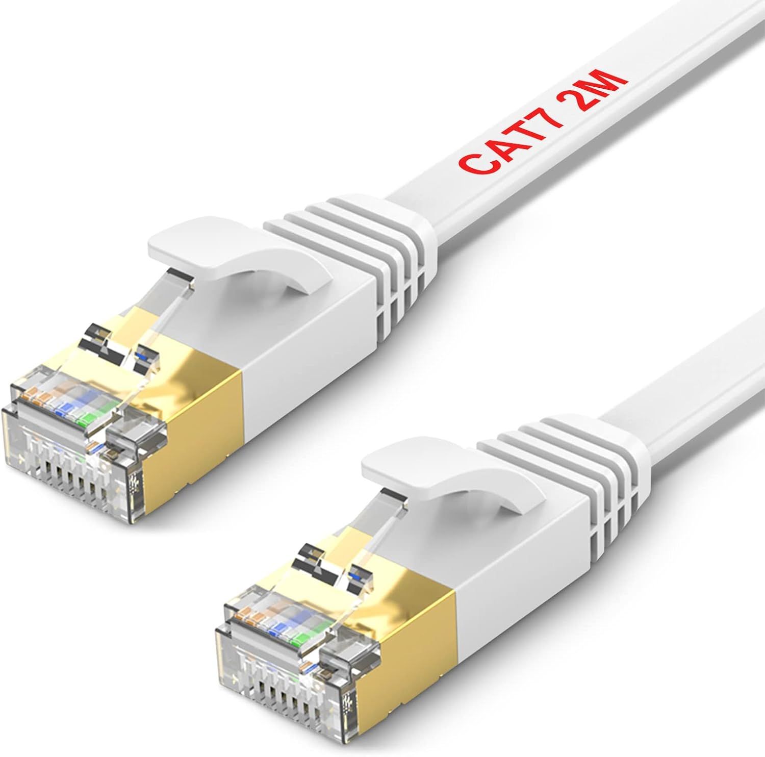 Hamiltion-2M Câble Ethernet Cat 7 Câble Réseau Plat Câble Rj45 Câble Haut Débit Lan-Gigabit Ethernet 10Gbps Câble De Patch 600Mhz Compatible Avec Routeur Modem, Blanc
