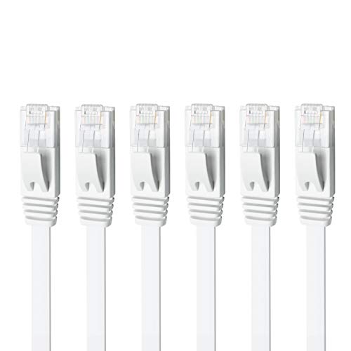 Yauhody Cable Ethernet Cat 6 RJ45 3m 6 Pièces, STP 1000Mbits 250Mhz Cable Reseau Plat, Gigabit Internet Cable de Patch pour Modem Routeur xBox PC TV Switch POE, Rapide que Cat 5 (Blanc)