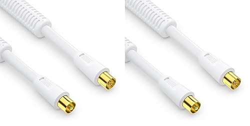 conecto Câble d'antenne SAT Câble coaxial Câble de satellite TV 2,0m 4 fois blindé Connecteur IEC avec ferrite, pour HDTV, récepteur, satellite, DAB, radio, blanc (Lot de 2)