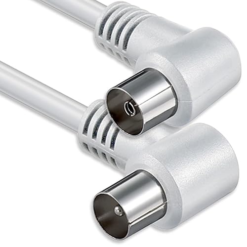 1aTTack Câble coaxial/antenne/Satellite Connecteur F Coaxial mâle vers coaxial Femelle 1,5 m - Câble coaxial mâle/Femelle - Connecteurs coudés -Blanc - 75 DB