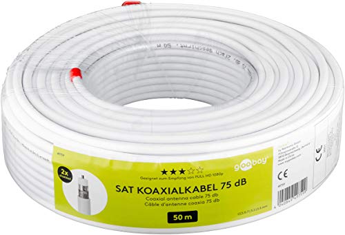 Goobay 49759 Câble Satellite coaxial 75 DB Double Blindage CCS Blanc 50 m