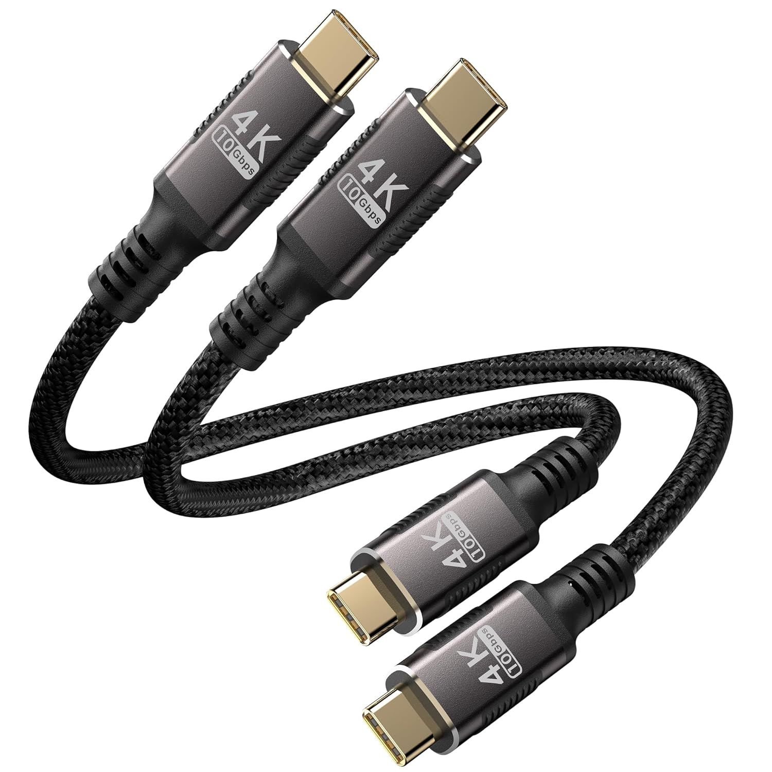 TYE-Cable USB C Court 15cm[0,15M/Lot de 2] Compatible avec Thunderbolt 3,Cable USB C 3.1 10Gbps Transfert de Données,Type-C 100W Charge Rapide,4K@60Hz/2K@120Hz Transfert Video HD Pour Moniteur.