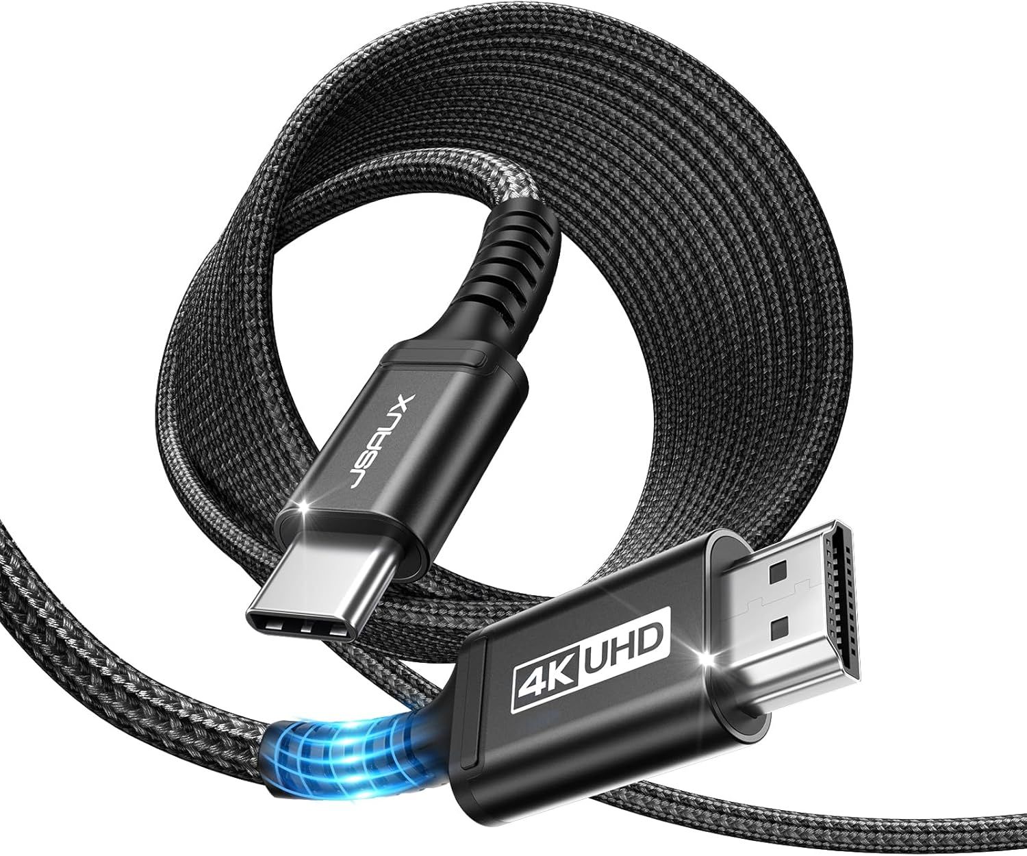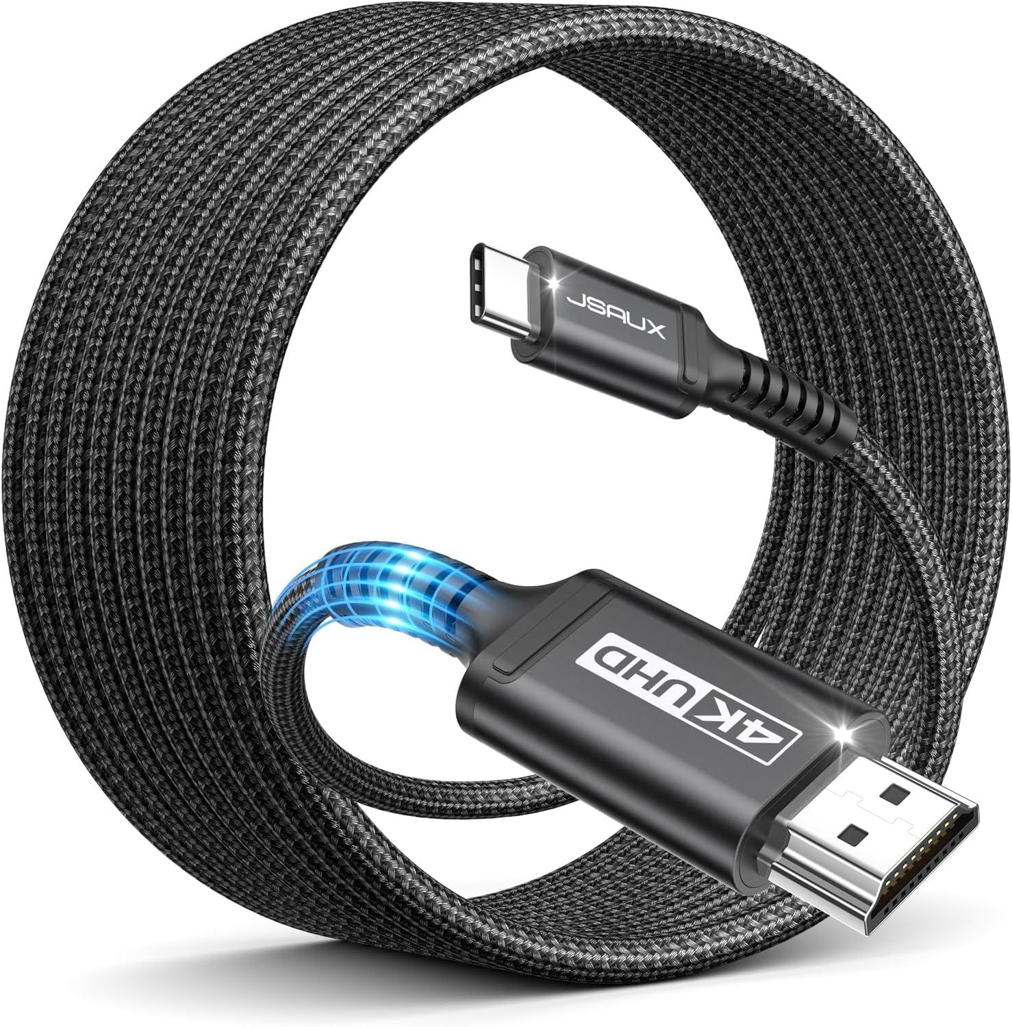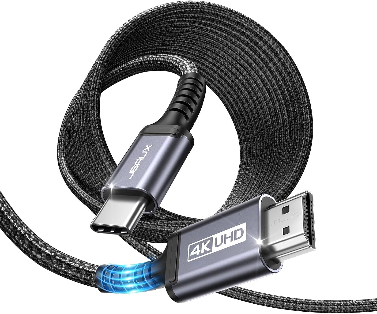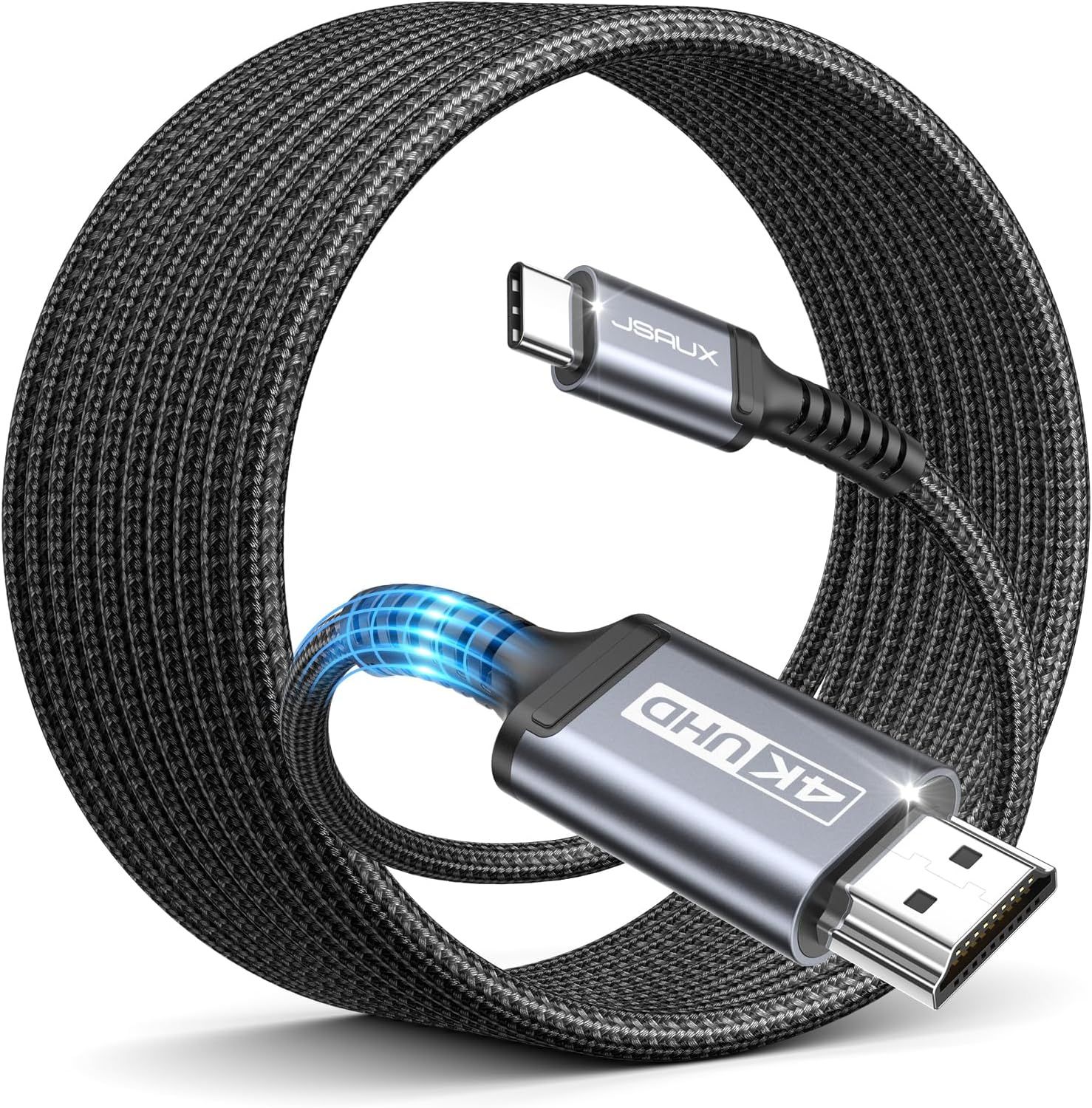 JSAUX Câble USB C vers HDMI 4K 4M, Cable USB Type C HDMI 4K UHD (Compatible Thunderbolt 3) pour MacBook Pro 2018/2017, iPad Pro 2018/Air 2020, Samsung Galaxy S20/S10, Surface Book 2, Huawei P40 etc.
