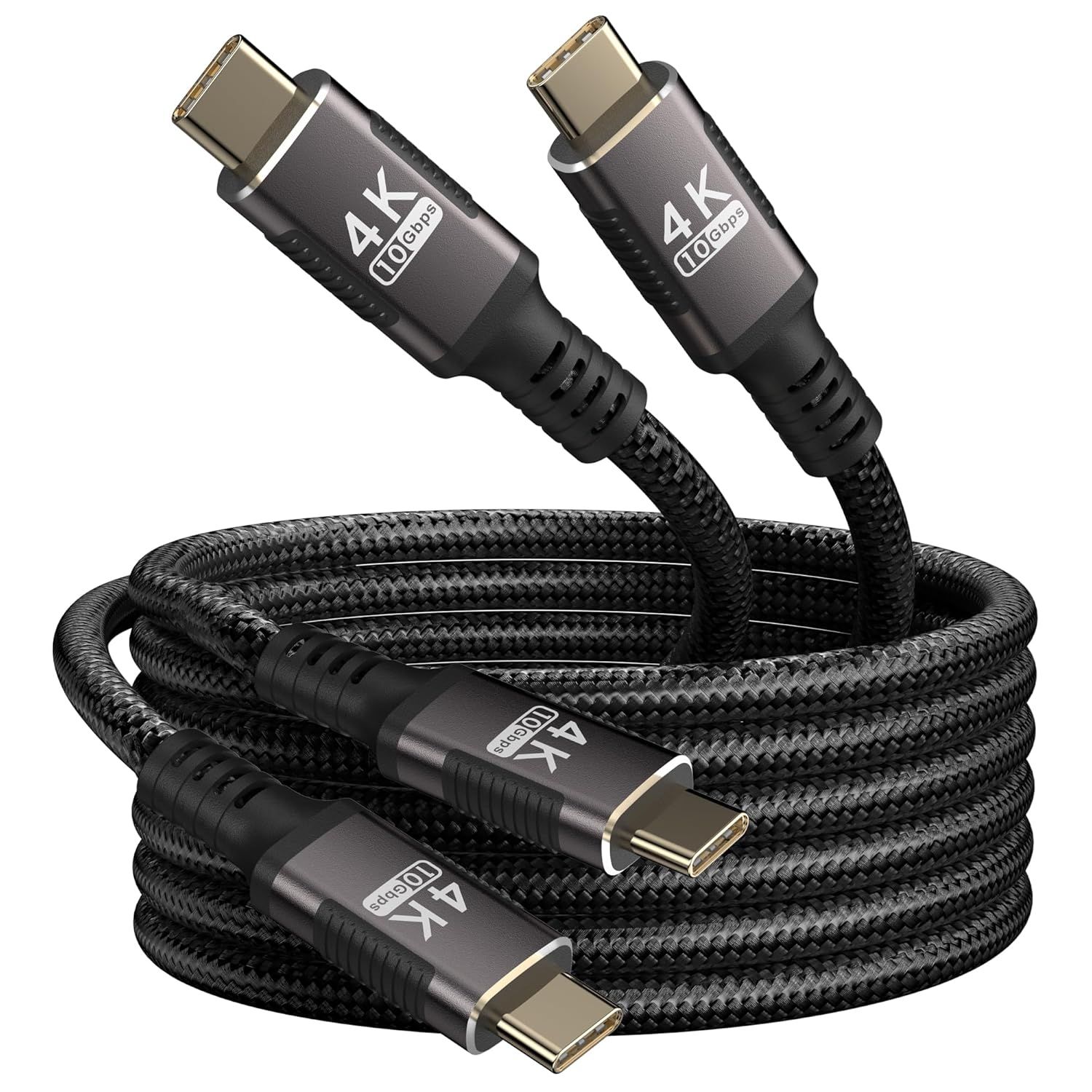 APT-Long Cable USBC 2m*2 [2M/Lot de 2] Compatible avec Thunderbolt 3,Cable USB C 3.1 10Gbps Transfert de données,Type C 100W charge rapide,4K@60Hz/2K@120Hz Transfert Video HD pour Display.