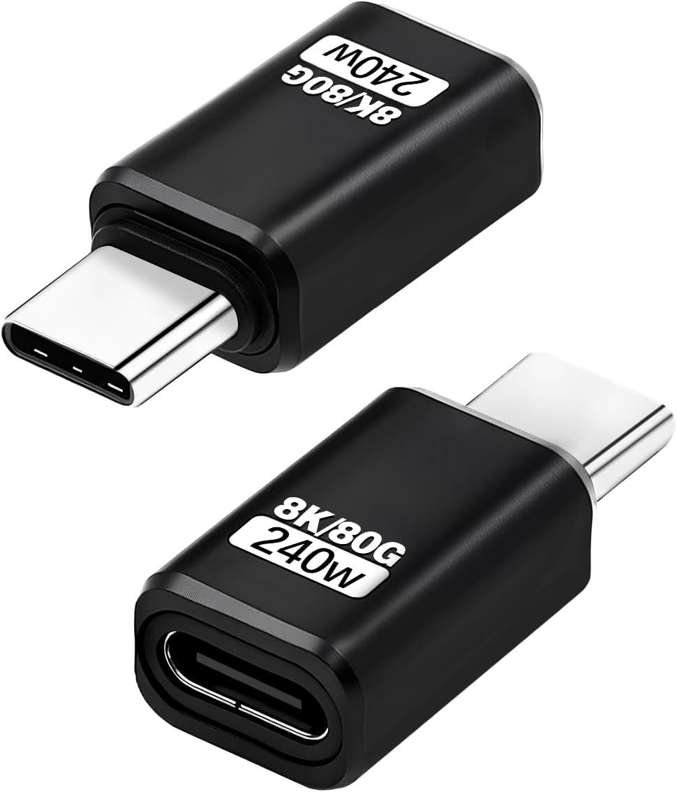 Duttek 80G 240W USB C Male to Female Adapter, USB C Extender Adapter Connector Compatible with Thunderbolt 5 Cable for Steam Deck, ROG Ally, Switch, Notebook, PC, Tablet, Phone 2 Pack