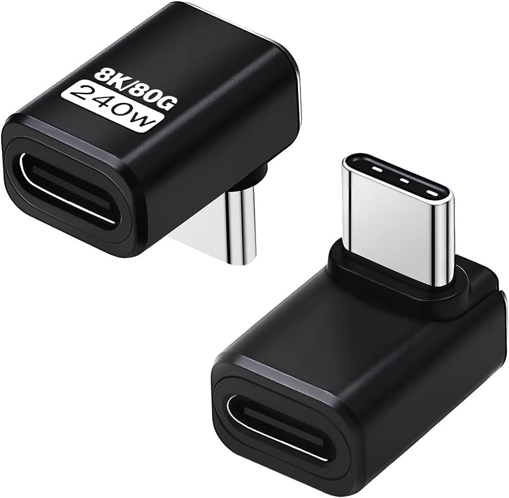 KALANKA-USB C 90 Degree Adapter [240W 80Gbps 8K@60Hz], 90 Degree USB C Adapter Compatible with Thunderbolt 5 Cable, Type-C Extender for Steam Deck, MacBook, Smart Tablet & Phone 2 Pack