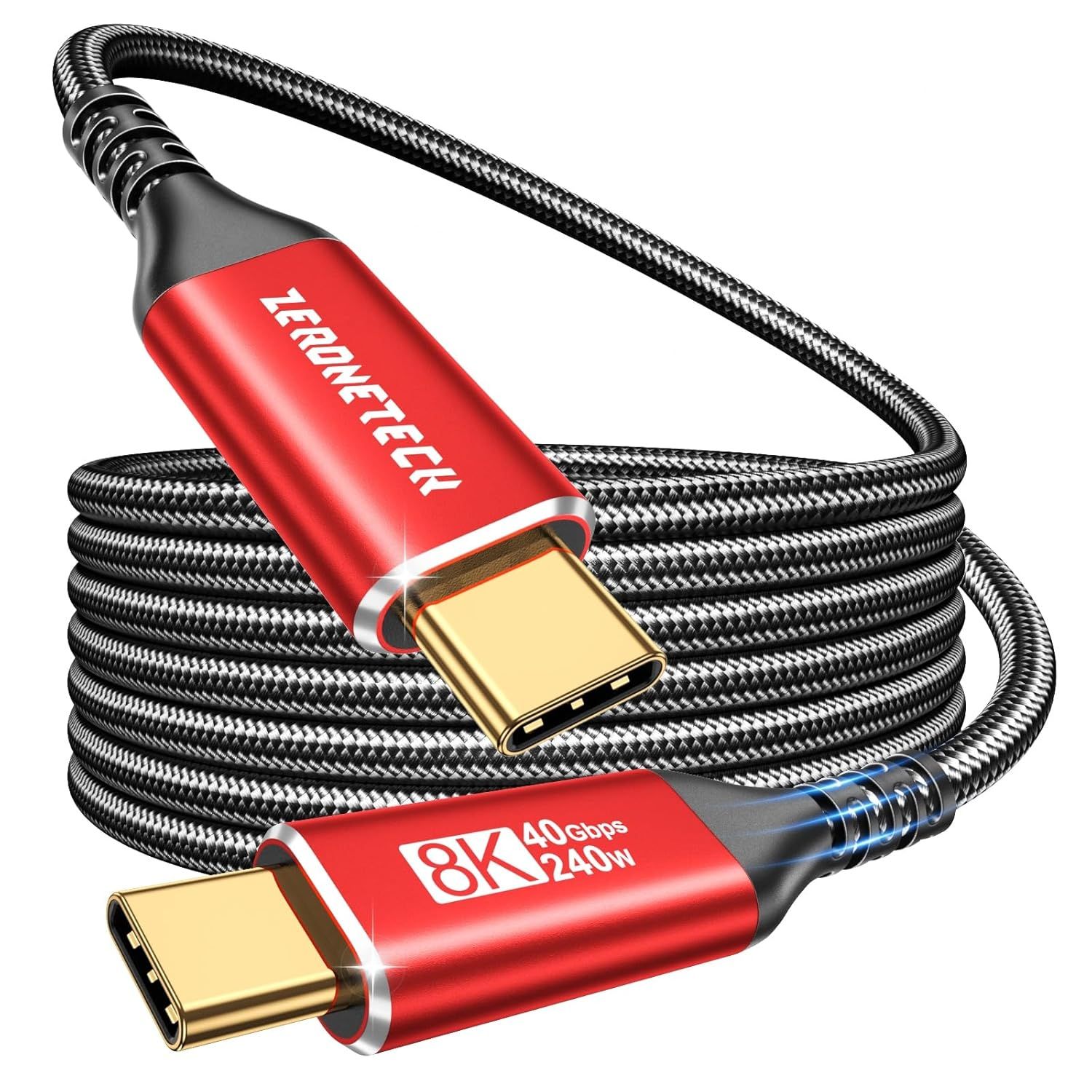 KALCX-Cable Thunderbolt 4 [2M,Rouge,8K@60Hz/4K@144Hz],Câble Vidéo Du Moniteur,240W Câble Usb C Vers Usb C Charge Rapid,Transfert De Données 40Gbps,Pour Macbook,Iphone 15/16 Promax,Ssd,Ecran Portable