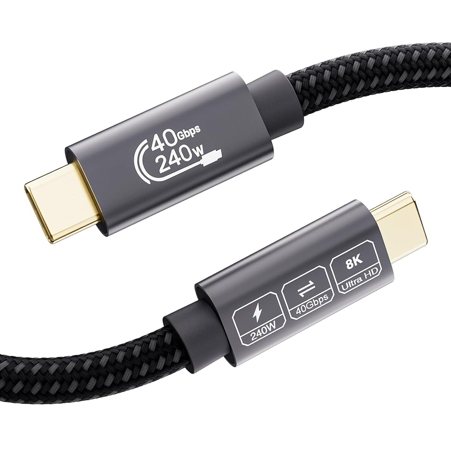 80Gbps USB4 V2.0 pour Câble Thunderbolt 5 1.2M,Certifié USB-IF,jusqu'à 120Gbps avec Bandwidth Boost,16K/Dual 8K,Charge Rapide 240W,Compatible avec Thunderbolt 4/3,USB C,Laptop,SSD