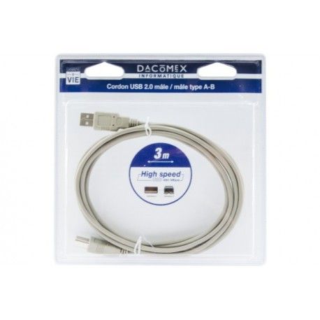 Dacomex blister cable usb 2 tpe a-b type - 3m