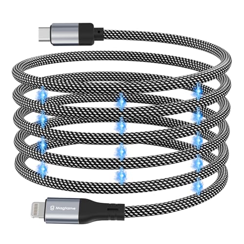 Magtame Câble magnétique USB C vers Lightning Coiled - 1 m - Certifié MFi - Câble de charge rapide tressé - Pour iPhone 14, 13, 12, 11 Pro Max XR XS X 8 Plus