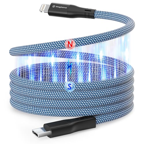 Magtame Câble magnétique USB C vers Lightning, 1,5 m, certifié MFi, câble de charge rapide certifié MFi, câble de charge rapide pour iPhone 14, 13, 12, 11 Pro Max XR XS X 8 Plus SE