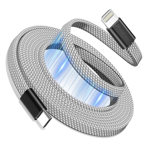 Magtame Câble magnétique USB C vers Lightning pour 1m câble chargeur i -Phone enroulé charge rapide certifié MFI câble plat rétractable tressé compatible avec i -Phone 14 13 12 11 pro Max xr XS X