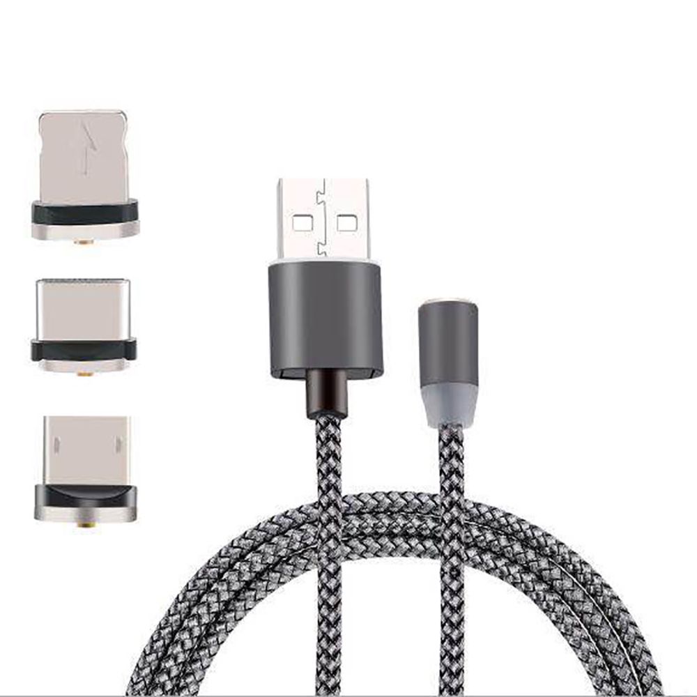 Cable Charge Rapide Magnétique 2M,3 En 1 Câble Usb C Magnetique Universel,Chargeur Aimanté Pour Micro Usb/Type C/Linght-Ing,Pour I-Phone Samsung Xiaomi,Rotation À 360 ° Et 180 °