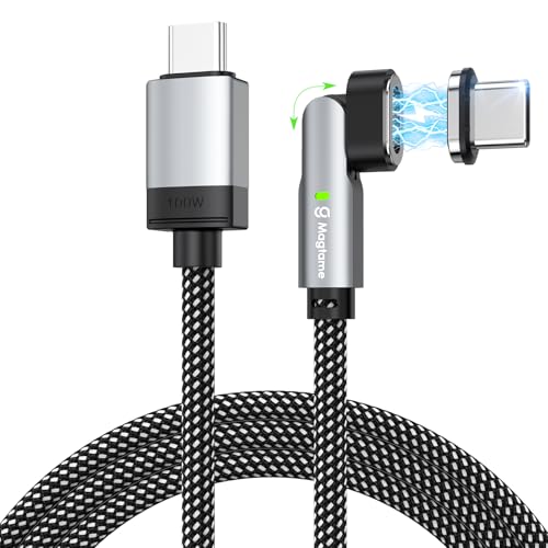 Magtame Câble magnétique USB C vers USB c 100W à angle droit, câble de charge magnétique de 5 pieds, câble tressé de type C de transfert de données de 90 degrés