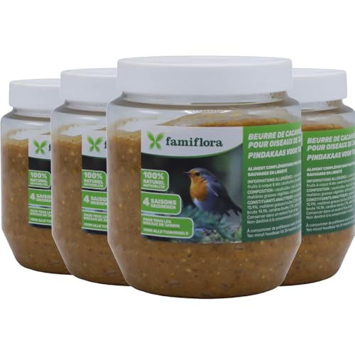 Famiflora beurre d'arachide d'oiseau pomme 4x 350GR - Beurre de cacahuète pour oiseaux - Avec arôme de pomme pour un goût irrésistible pour les oiseaux - Convient à tous les oiseaux de jardin afin