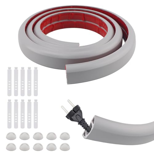 Goulotte Passe Cable adhésif Cache Cable TV Mural Semi-circulaires Cache Fil Electrique Flexible goulotte Electrique pour Le Sol Mural (Gris, 7mm×14mm×3m)