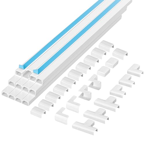 RtottiM Goulotte Passe Cable, 16pcs Goulottes de Câbles Cache Cable TV Mural, Goulotte Cable Autocollante, Cable Management Montage sur Le Mur pour la Gestion des Câbles Maison Bureau-400x30x15mm