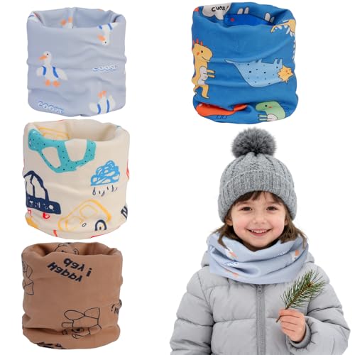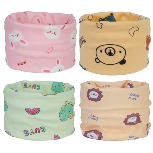 flintronic Lot de 4 Cache Cou Enfants, Tour de Cou en Coton Enfant, Écharpe d'hiver pour Bébé Garçons et Filles, Chaud et Coupe-Vent, écharpes à Boucles, pour le Printemps, I'automne et I'hiver
