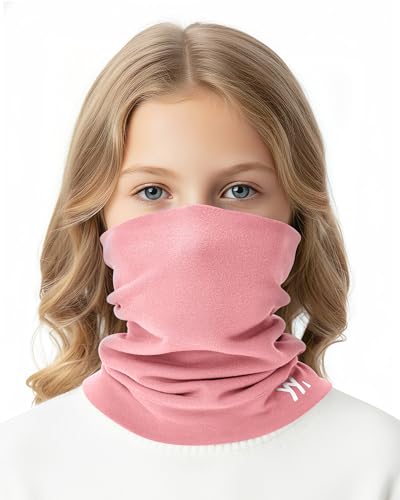 AIDIER Écharpe en Polaire pour Garçons Filles 3 à 8 Ans Enfant Cache-Cou Épais Tube Foulard d'hiver Garçons Snood Chaud Thermique Coupe-Vent Tour de Cou Gaiter pour Ski Cadeau Noël, Rose