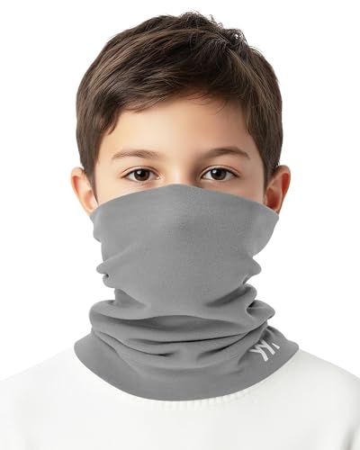 AIDIER Écharpe en Polaire pour Garçons Filles 3 à 8 Ans Enfant Cache-Cou Épais Tube Foulard d'hiver Garçons Snood Chaud Thermique Coupe-Vent Tour de Cou Gaiter pour Ski Cadeau Noël, Gris