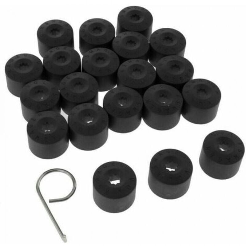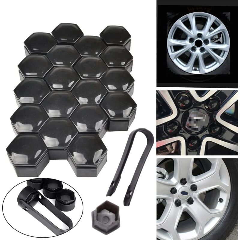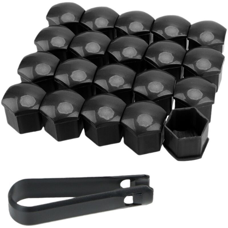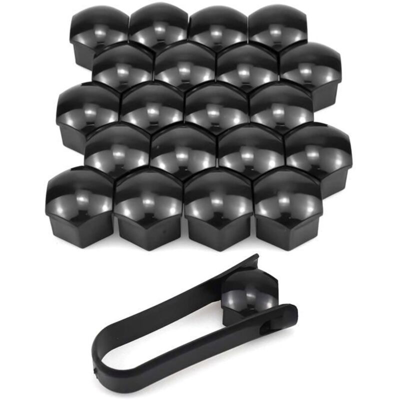 Lot de 20 cache ecrou de roue de voiture, 21 mm de largeur hexagonale, universels, en plastique, avec clip de démontage, noir