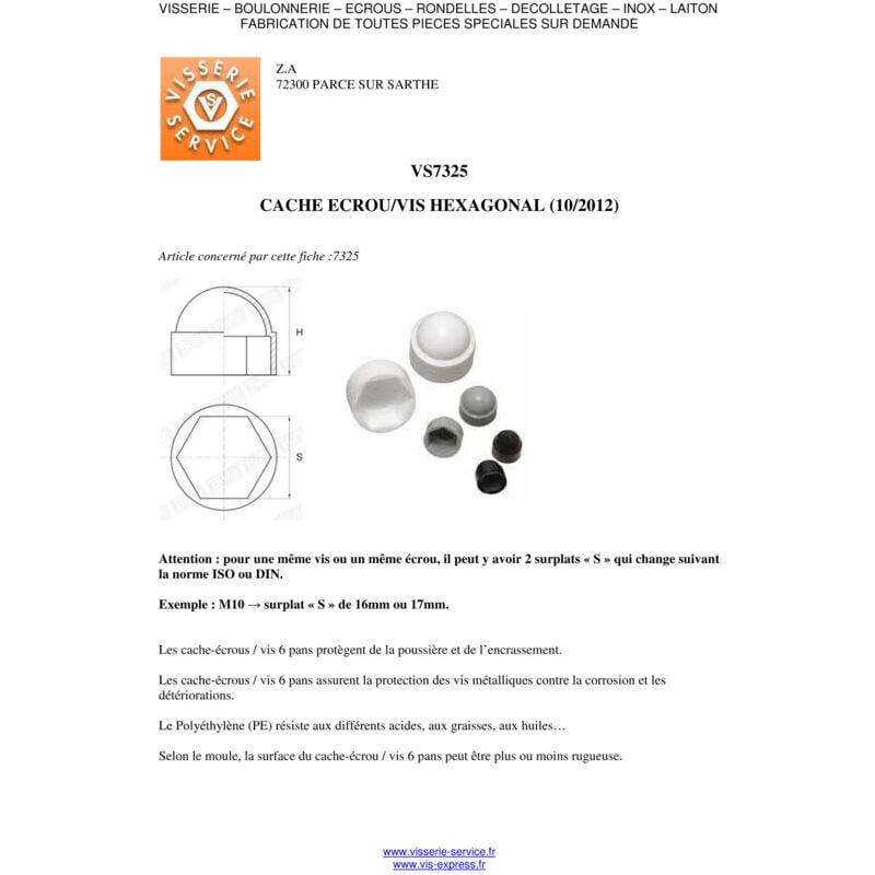 Vis Express - Cache Ecrou ou cache tête vis Tête hexagonale th M8 Nylon Blanc Sur plat 13-100 pièces