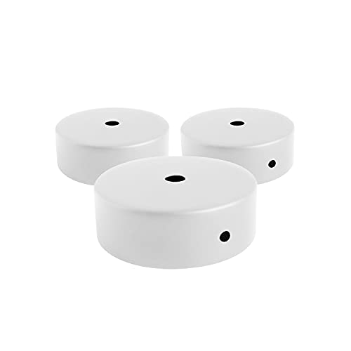 AMARCORDS - 3 Auvents de plafond en métal, cache fil pour lustre couleur BLANC, boîtier de lampe complet avec accessoires serre-câbles, vis et support de plafond. Diamètre 77mm hauteur 26mm