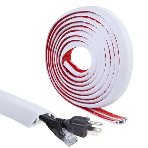Bocguy 3M Cache Cable Sol, Petit Canal de câble Flexible,Goulotte Passe Cable Sol Silicone, Cache Fil Électrique Sol Auto-Adhésif Facile à Couper Montage pour Tous Les Câbles (Blanc)