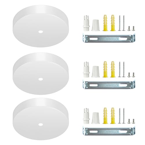 AMARCORDS - 3 Auvents de plafond en métal, cache fil pour lustre couleur BLANC, boîtier de lampe complet avec accessoires serre-câbles, vis et support de plafond. Diamètre 77mm hauteur 26mm