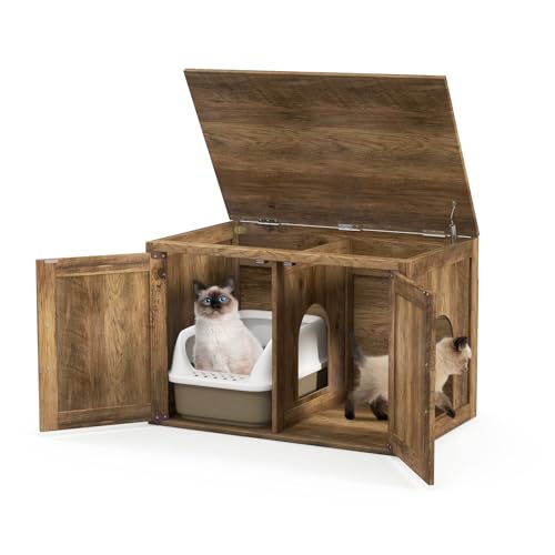 GOPLUS Meuble Litiere Chat, 108 x 50,5 x 73,5 CM, Maison de Toilette Chat d'Intérieur, Cache Litiere avec 2 Portes et Griffoirs en Sisal et Planche à Gratter, 2 Entrées, 2 Compartiments Ouverts